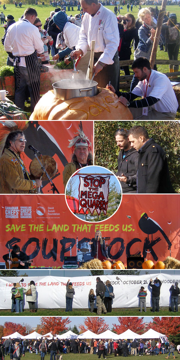 Thousands were out bright and early in Woodbine Park, eating gourmet activist soups and signing the giant petition against the Mega-Quarry.(You can sign the online petition here. Sorry, no soup.)