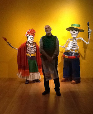 iPad photo: Life size papier maché Mexican parade-style figures of Frida and Diego made for the show by Toronto artists Shadowland (I added the graphic title.)