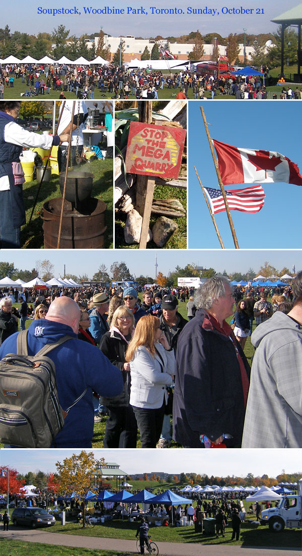 Thousands were out bright and early in Woodbine Park, eating gourmet activist soups and signing the giant petition against the Mega-Quarry.(You can sign the online petition here. Sorry, no soup.)
